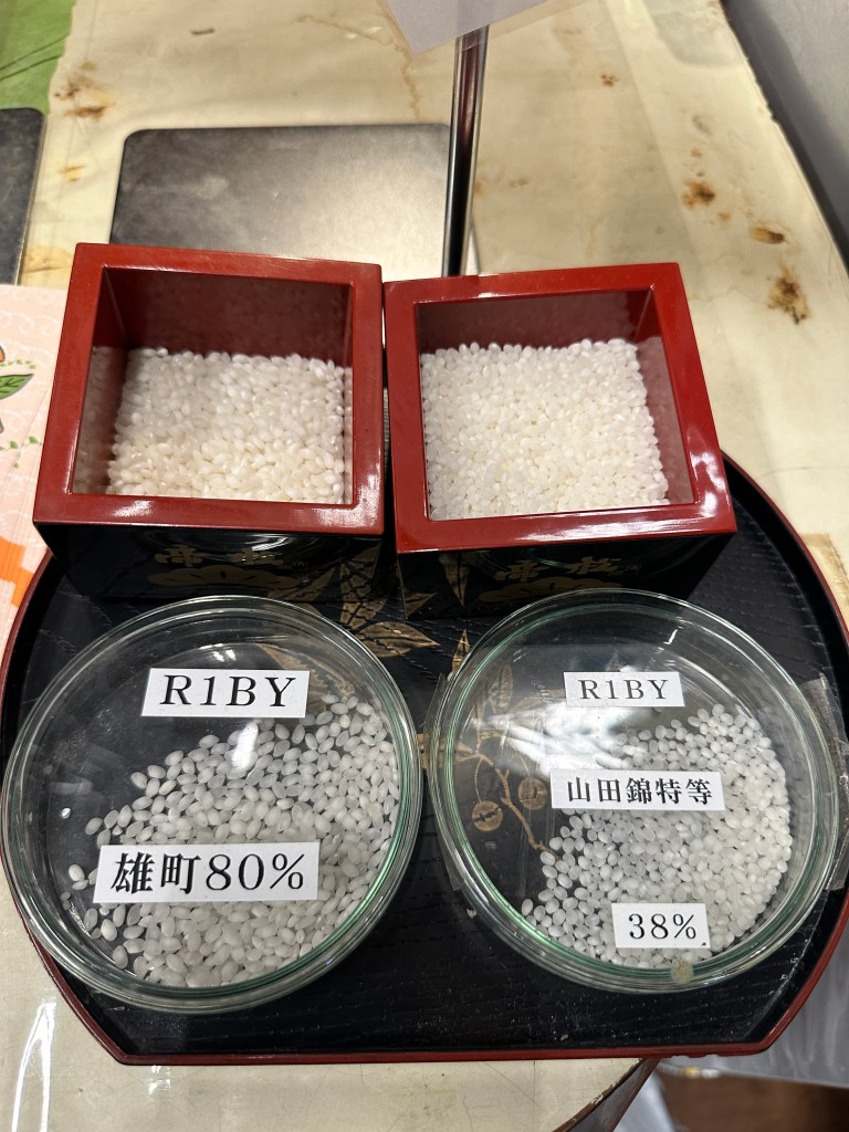 Khi xát gạo để làm Sake bằng máy xát đặc biệt, tỉ lệ phần shinpaku được giữ lại đạt 38-40% là loại gạo làm Sake rất chất lượng.