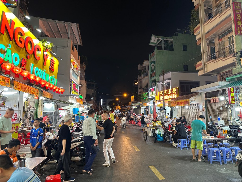 Chỉ trong 1 đoạn phố ngắn tầm hơn 100m với 50 số nhà 2 bên đường, mở hàng từ 17h chiều đến sáng, thực khách tìm đến đây để thưởng thức các món liên quan đến Sủi Cảo của người Hoa: Sủi Cảo, Hoành Thánh Mì, Sủi Cảo Chiên, Cá viên…